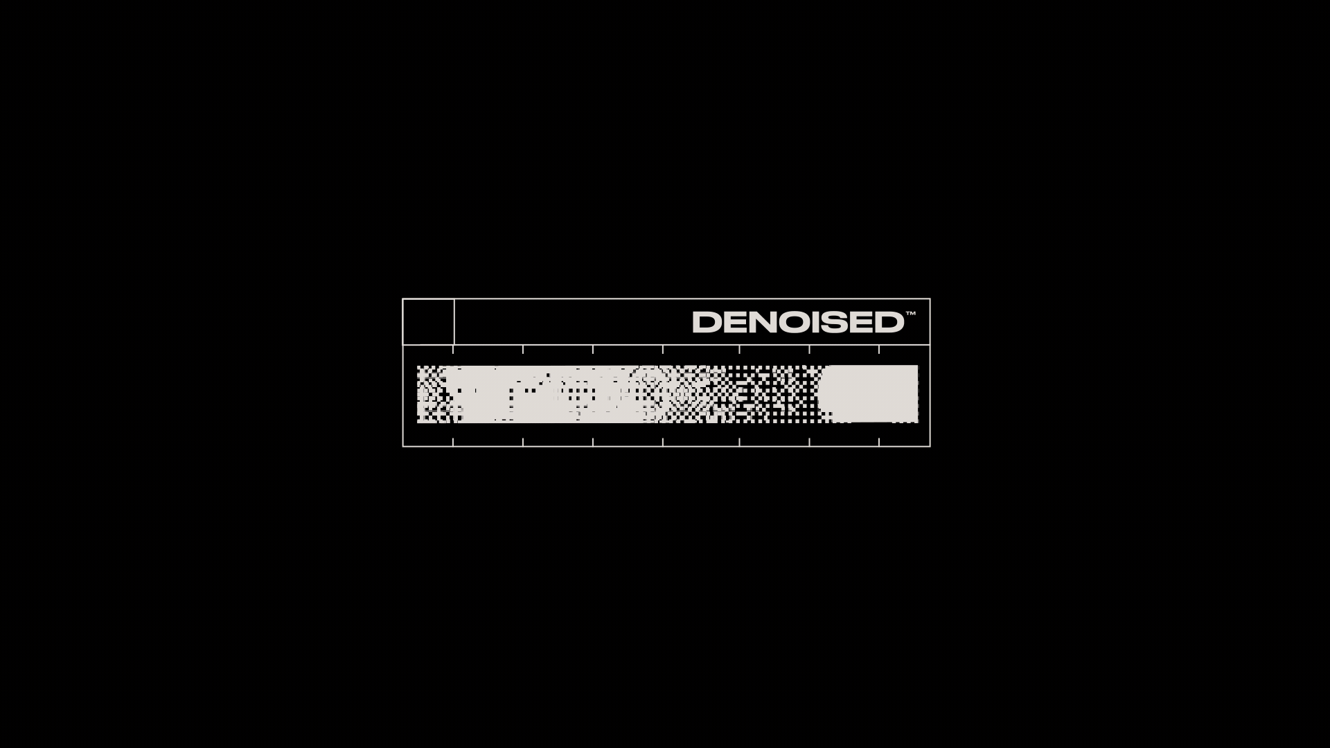 The visual identity translates denoising into design. Noise becomes bars and matrices that recede as order appears. A bold sans-serif wordmark anchors the system. A monospace typeface signs specifications, seals, and HUD labels. Layouts run on a strict grid with generous negative space, keeping the work at the center. The palette is built on gray-black and beige as the base, with purple as the lead color. Light green and orange act as controlled accents. High contrast without pure black or pure white.